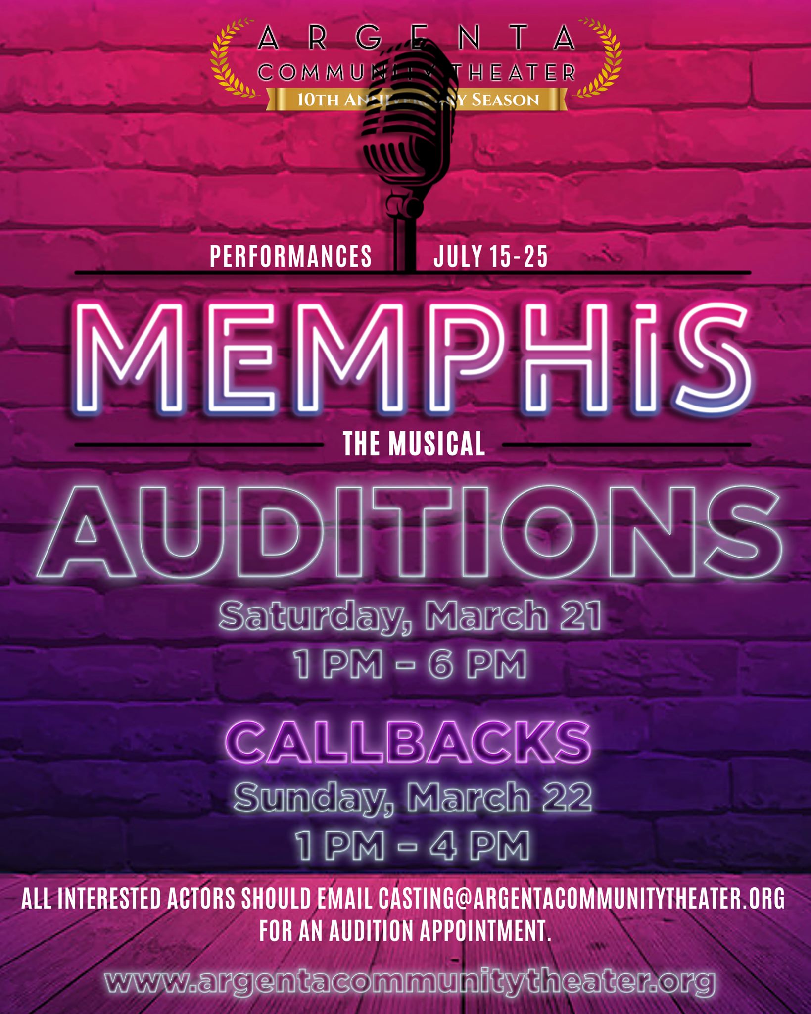 Argenta Theater On Twitter Memphis The Musical Auditions Auditions Sat March 21 1 Pm 6 Pm Callbacks Sun March 22 1 Pm 4 Pm All Interested Actors Should Email