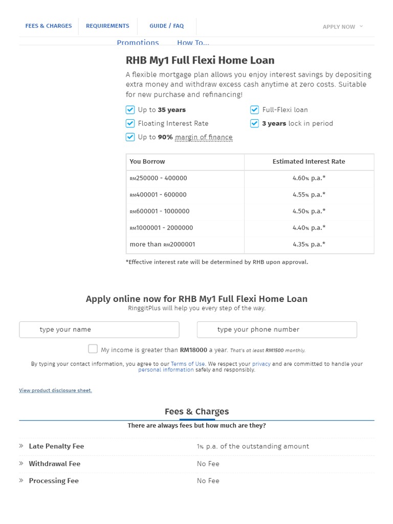 RHB My1 Full Flexi Home Loan Interest Rate from 47 pa. For annual income of SGD 120000 and above loan amount. Layari website rasmi RHB online banking RHBNow di sini.